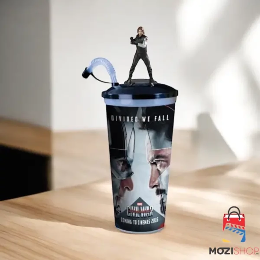 Az igazi különlegesség azonban a topper, amely a pohár tetején található. A topper egy részletesen kidolgozott Bucky Barnes figura, amellyel a pohár valódi gyűjtői darabbá válik. A figura minőségi kidolgozása és dinamikus testtartása hűen tükrözi karakterének erőteljes és magabiztos megjelenését, így nem csak funkcionális, de esztétikai értéket is képvisel. A gyűjtői darab egy szívószállal kiegészítve könnyen használható, így a pohár mindennapi használatra is tökéletes választás lehet, legyen szó egy otthoni mozizásról, vagy akár egy kirándulásról. (A szívószál nem része a csomagnak)