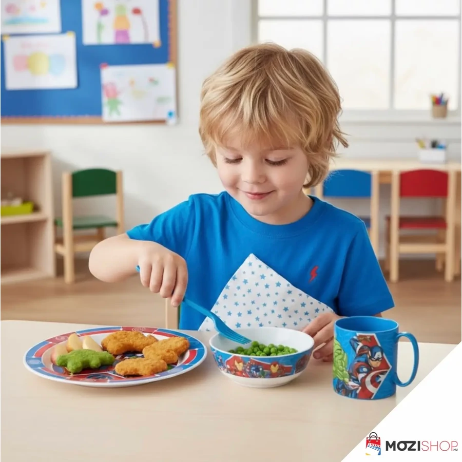 Unalmasak a reggelik? Nehezen megy az ebéd? Változtasd a konyhát a Bosszúállók főhadiszállásává ezzel a vagány, katonai stílusú szettel! Ez a gyerek étkészlet nem csupán egy tálalóeszköz, hanem egy belépőjegy a Marvel Univerzumba.