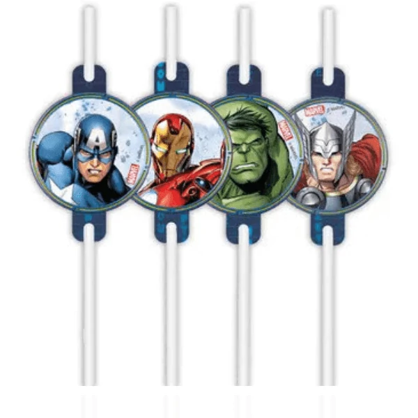 Egy remek hangulatú Marvel party elengedhetetlen része ez a pohár készlet mellé illő Bosszúállók szívószál