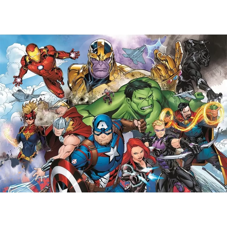 Bosszúállók puzzle 104 db-os - 48,5 x 33,5 kirakható képméret - A Bosszúállók csapatának összes népszerű karaktere egy Clementoni készítette kirakón