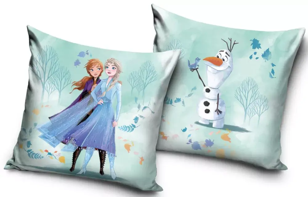A párna egyik oldalán Anna és Elsa, a Jégvarázs című film ikonikus hősnői láthatók. A gyönyörű, részletgazdag grafika azonnal megragadja a tekintetet, és visszaadja a Disney mesék varázslatos hangulatát. A másik oldalon Olaf, a mókás és szerethető hóember jelenik meg, vidámságot csempészve a szobába. Ez a kétoldalas design lehetővé teszi, hogy a párnát könnyedén forgathasd, mindig az aktuális hangulatodnak megfelelő mintát előtérbe helyezve.
