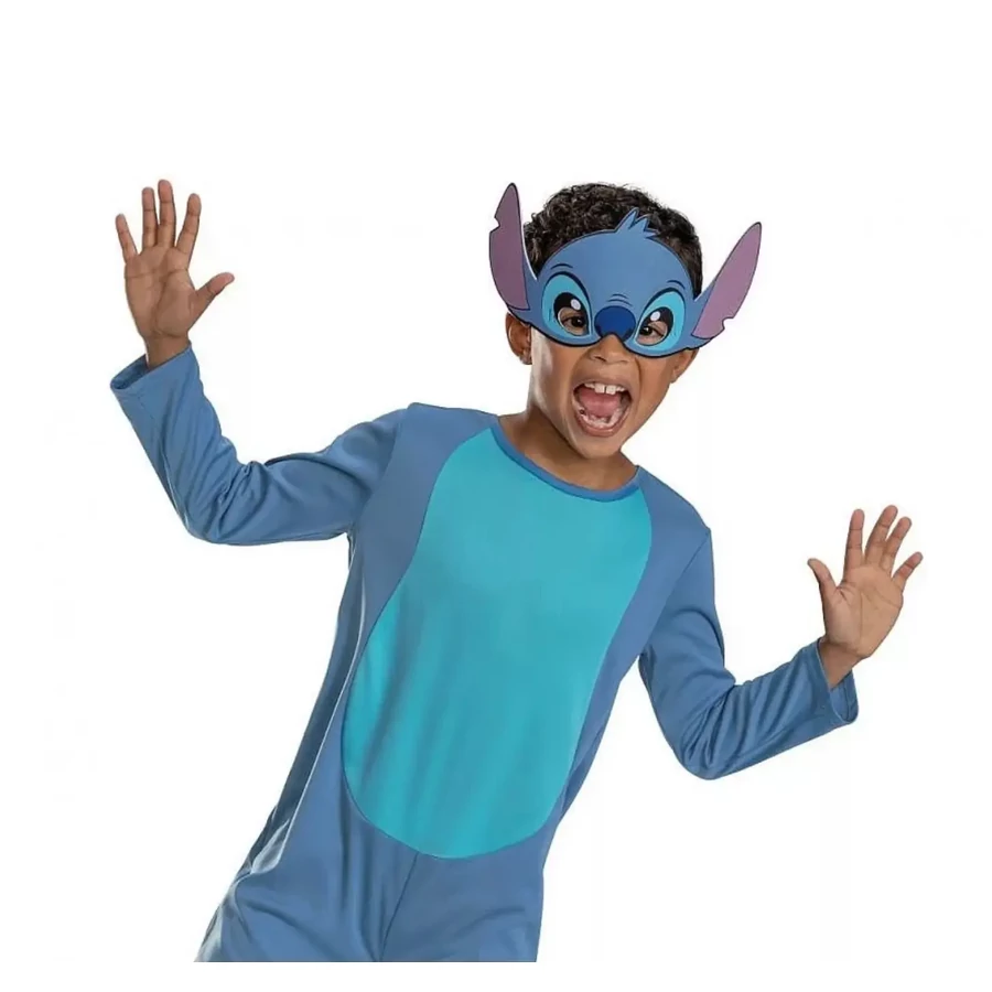 Disney Lilo és Stitch, A csillagkutya jelmez S méret, 5-6 éves gyerekeknek - A kék űrlény gyerek jelmez szett egy kezeslábast, egy maszkot tartalmaz, 100% poliészter anyagból