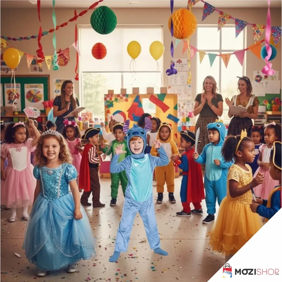 Ez az eredeti Stitch jelmez pontosan azt a huncut, mégis imádnivaló karaktert idézi meg, akit a gyerekek a Lilo és Stitch című meséből annyira megszerettek. A jelmez vibráló kék színe azonnal vonzza a tekintetet: a mélyebb azúr és a világosabb égszínkék árnyalatok tökéletes harmóniája élethűvé varázsolja a kis 626-os kísérleti alanyt. A kék űrlény jelmez anyaga puha és kényelmes, így a gyerekek szabadon ugrálhatnak, táncolhatnak vagy "felfalhatják" a süteményes tálat, épp úgy, mint az igazi Stitch!