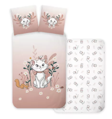 Disney Marie cica ágyneműhuzat garnitúra - 140 cm x 200 cm, és 70 cm x 90 cm méretben, 100% pamut anyagú