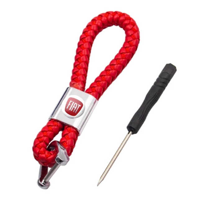 Fiat kulcstartó, távirányító tartó fonott műbőr dísszel, biztonsági záras kulcskarikával - kb 11 cm X 2 cm X 1,7 cm méretben