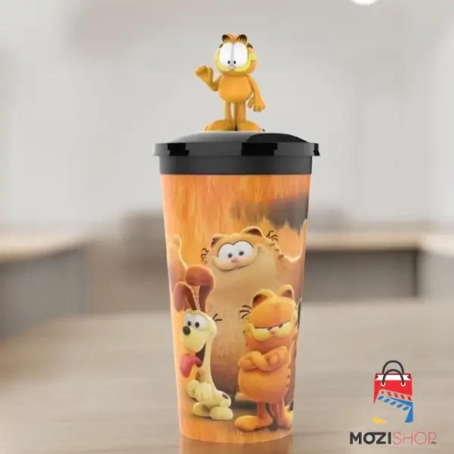 A készlet tartalma: 1 db pohár (500 ml) , 1 db tető, 1 db Garfield topper, figura