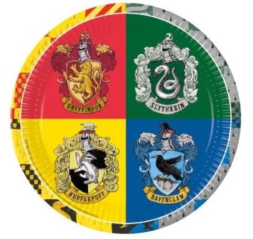 Harry Potter papírtányér 23 cm - Hogwarts Houses - 8 db-os szett