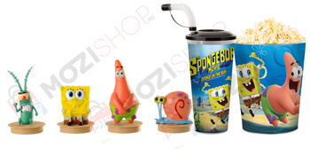A SpongyaBob mozis cuccok kínálatában 0,5 literes pohár négy különböző topper, 3,8 literes popcorn vödör, valamint négy SpongyaBob: Spongya szökésben plüss figura érhető el 2020. szeptember 1-től a MoziShop.hu kínálatában.