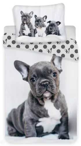 Kutyás ágyneműhuzat garnitúra - A Francia Bulldogs ágynemű garnitúra egy darab 140 cm X 200 cm méretű paplanhuzatot és egy darab 70 cm X 90 cm méretű párnahuzatot tartalmaz, 100% pamut anyagból