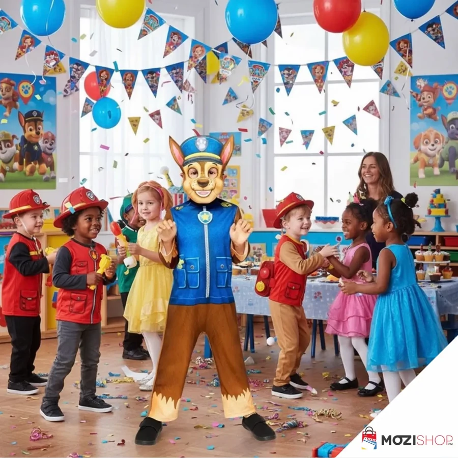 Öltsd magadra a kedvenc animációs sorozatod egyik főhősének a jelmezét! A népszerű Mancs őrjárat Chase kutyusa látja el a rendőri feladatokat, és most itt a lehetőség hogy a jelmezverseny idejére te magas legyél az okos és bátor rendőrkutya. A Paw Patrol Chase jelmez overálja pillanatok alatt egyenruhás németjuhász kutyát farag belőled, és már csupán a fülekkel ellátott maszkot kell felvenned. A nagyszerű jelmez 100% poliészter anyagból kiváló minőségű, aprólékos kidolgozással készült, így remek választás a farsangi bálra, valamint a Halloween alkalmi beöltözésre.
