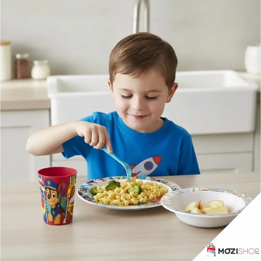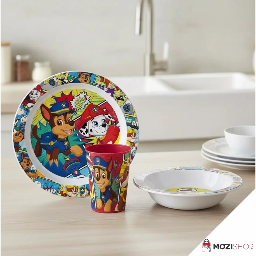 Mancs őrjárat étkészlet, micro műanyag étkészlet - 3 darabos készlet - A PAW Patrol műanyag étkészlet tartalmaz egy darab mélytálkát, egy darab lapostányért és egy darab 260 ml-es poharat, amely BPA mentes műanyagból készült