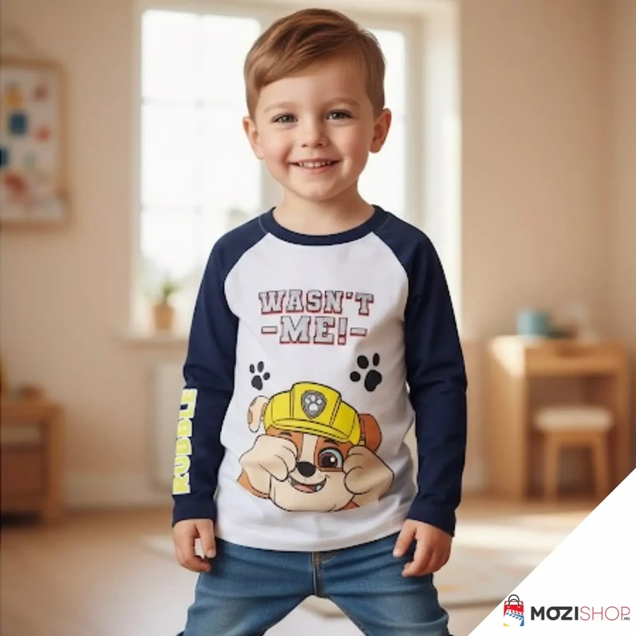 A gyerek póló középpontjában a mindenki által kedvelt építőmester kutyus, Rubble látható. A minta különlegessége a „WASNT ME!” (Nem én voltam!) felirat, ami huncut és élethű karaktert ad a felsőnek – pont olyat, amilyen egy Eleven 4 éves kisfiú vagy kislány. A grafika részletgazdag, élénk színei pedig még több mosást követően is megőrzik frissességüket.