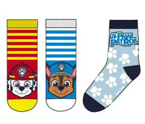 Mancs őrjárat gyerek zokni szett - 23/26 méret - 3 pár, különböző grafikával készült Paw Patrol gyerek zokni - 62% pamut, 23% poliészter, 13% poliamid és 2% elasztán anyagból
