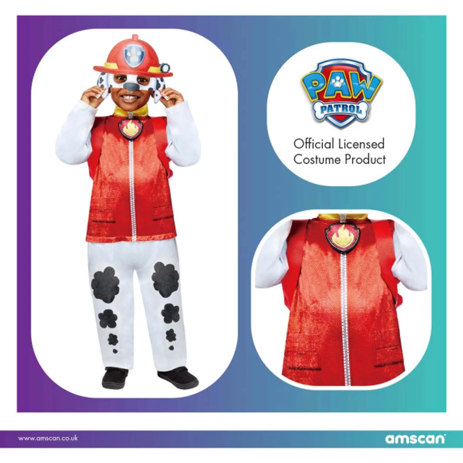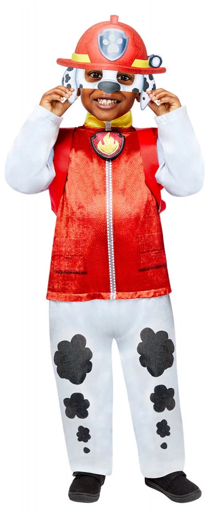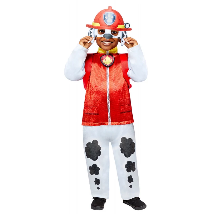 Öltsd magadra a kedvenc animációs sorozatod egyik főhősének a jelmezét! A népszerű Mancs őrjárat Marshall kutyusa látja el a tűzoltó feladatokat, és most itt a lehetőség hogy a jelmezverseny idejére te magas legyél az okos és bátor tűzoltó kutya. A Paw Patrol Marshall jelmez overálja pillanatok alatt egyenruhás dalmata kutyát farag belőled, és már csupán a fülekkel ellátott maszkot kell felvenned. A nagyszerű jelmez 100% poliészter anyagból kiváló minőségű, aprólékos kidolgozással készült, így remek választás a farsangi bálra, valamint a Halloween alkalmi beöltözésre.