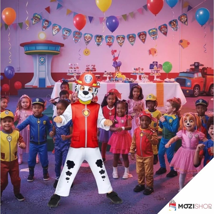 Öltsd magadra a kedvenc animációs sorozatod egyik főhősének a jelmezét! A népszerű Mancs őrjárat Marshall kutyusa látja el a tűzoltó feladatokat, és most itt a lehetőség hogy a jelmezverseny idejére te magas legyél az okos és bátor tűzoltó kutya. A Paw Patrol Marshall jelmez overálja pillanatok alatt egyenruhás dalmata kutyát farag belőled, és már csupán a fülekkel ellátott maszkot kell felvenned. A nagyszerű jelmez 100% poliészter anyagból kiváló minőségű, aprólékos kidolgozással készült, így remek választás a farsangi bálra, valamint a Halloween alkalmi beöltözésre.