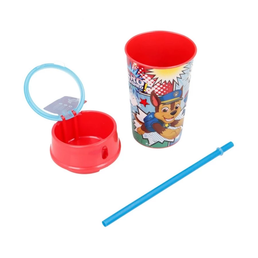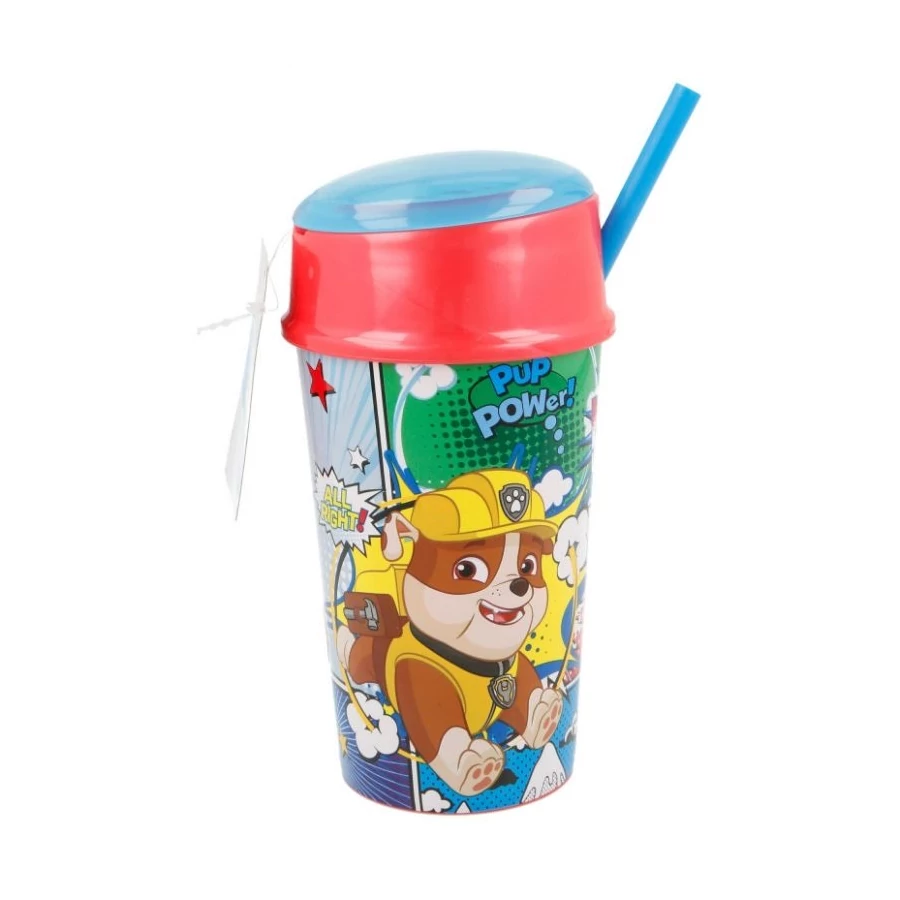 Mancs őrjárat üdítő és snack tartó pohár szívószállal 400 ml űrtartalommal - A Paw Patrol üdítő és snack tartó pohár 18,7 cm X 8,4 cm méretű