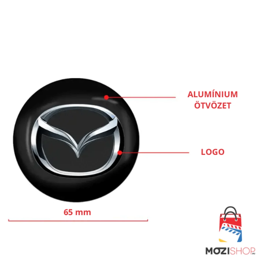 Mazda felni matrica szett - 65 mm-es, 3D kivitel - Öntapadó alumínium felni kupak matrica, enyhén domború kivitelben, 4 darabos készlet