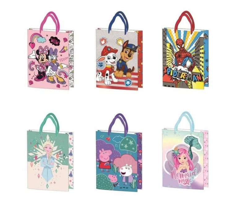 A több minta közül az elérhető változatot kiválasztva könnyedén, praktikusan és gyorsan becsomagolhatjuk a megajándékozni kívánt számára a gondosan kiválasztott ajándékunkat. A 34 cm X 26 cm X 12 cm-es ajándékzacskó mintái között megtalálható a Mancs őrjárat, Pókember, Jégvarázs, Peppa Malac, Minnie egér és a Sellő is.