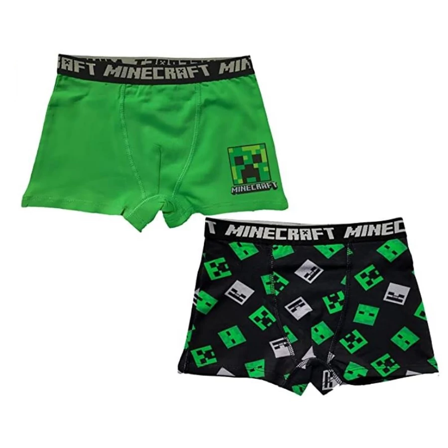 Minecraft gyerek boxeralsó 2 darabos csomag - 140-es méret, 10 éveseknek - A Minecraft gyerek fehérneműk 95% pamut és 5% elasztán anyagból készültek