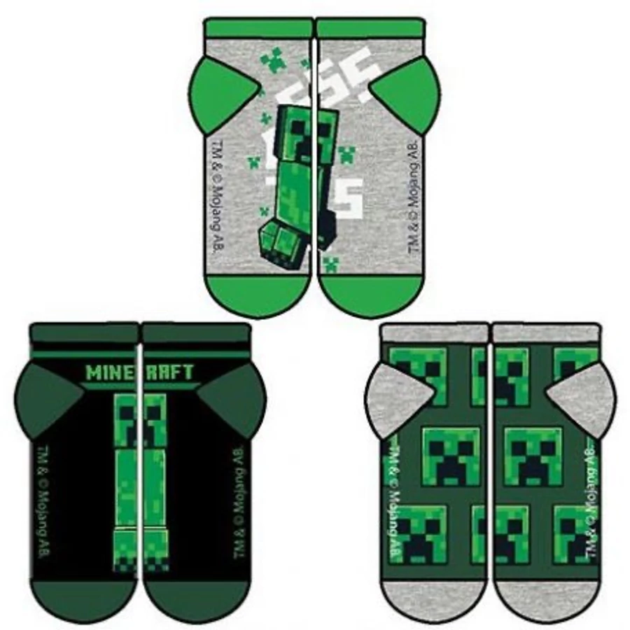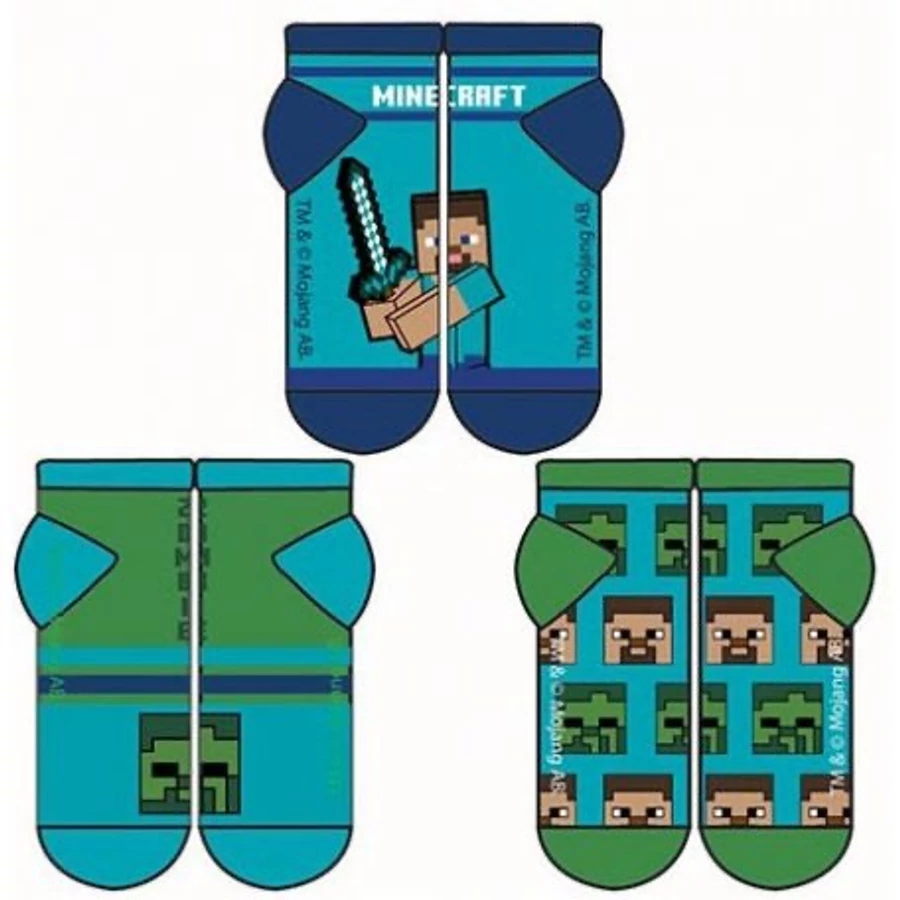 Minecraft gyerek titokzokni szett - 23-26 méret - 3 pár, különböző grafikával készült Minecraft gyerek titokzokni - Több változatban