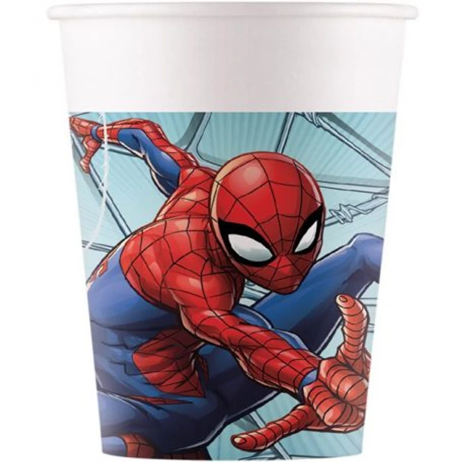 A nyolc darabos Pókember papír pohár szett elengedhetetlen kelléke egy igazi Marvel szülinap partynak. A 200 ml űrtartalmú poharak újrahasznosított papírból készült.