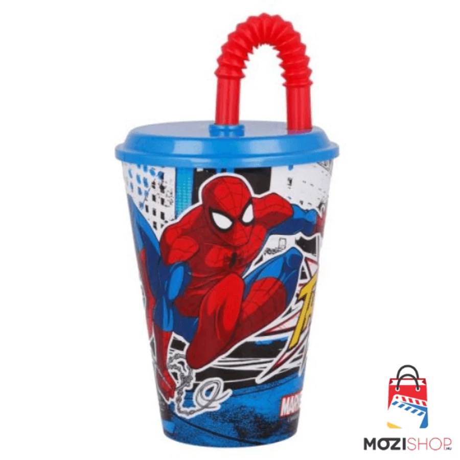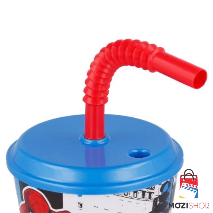 Pókember műanyag szívószálas pohár - A Marvel Spider-Man műanyag pohár szívószállal 430 ml űrtartalmú, BPA mentes műanyagból készült