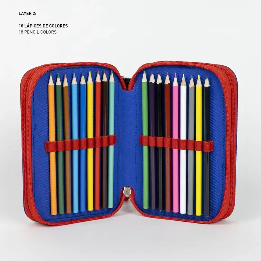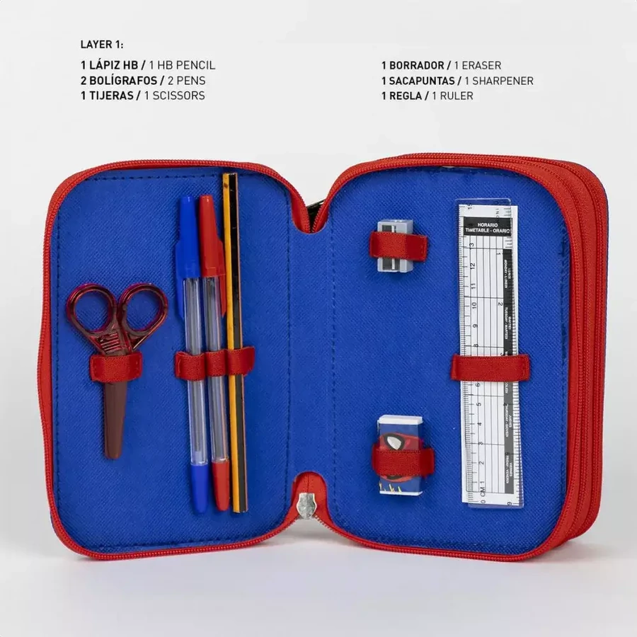 Pókember töltött tolltartó - 3 emeletes - 44 darabos készlettel - A Marvel Spider-Man töltött tolltartó 13 cm X 20 cm X 7 cm méretű