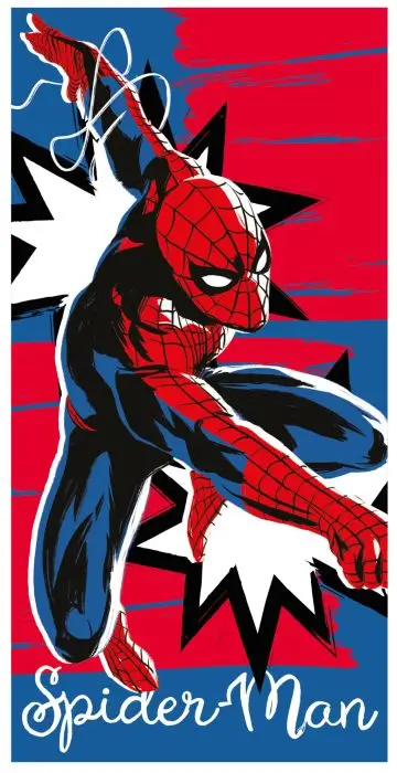Pókember törölköző, fürdőlepedő 70 cm X 140 cm méretben, 100% poliészter anyagú - A Spider-Man strand törölköző grafikáján a népszerű Marvel karakter épp bevetésre készül