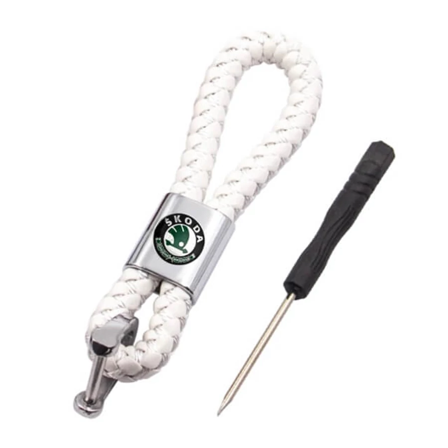 Skoda kulcstartó, távirányító tartó fonott műbőr - Fehér