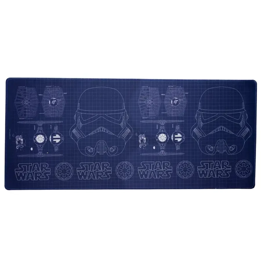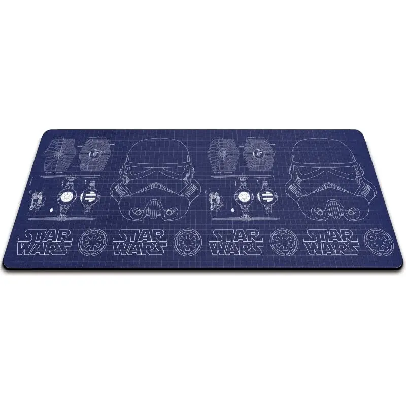 A Star Wars rajongók számára az igazi különlegességet a rohamosztagos grafikával díszített design nyújtja. A kék alapszínre készült fehér tervrajz szerű ábrák az ikonikus Star Wars világát idézik meg, pontosabban a rohamosztagosok sisakjának és a TIE Fighter űrhajóknak a részletes ábráival. Ez a látványos és egyedi grafika nemcsak látványos kiegészítővé teszi az egérpadot, de egyben visszarepít mindenkit a Csillagok háborúja univerzumába, ahol a Birodalom harcosai küzdenek a Lázadók Szövetségével szemben. Az alján található Star Wars logók és a Birodalmi jelképek tovább fokozzák az autentikus Star Wars élményt, így minden alkalommal, amikor rápillantasz az egérpadra, egy kicsit úgy érezheted, hogy te is a galaxisban harcolsz.