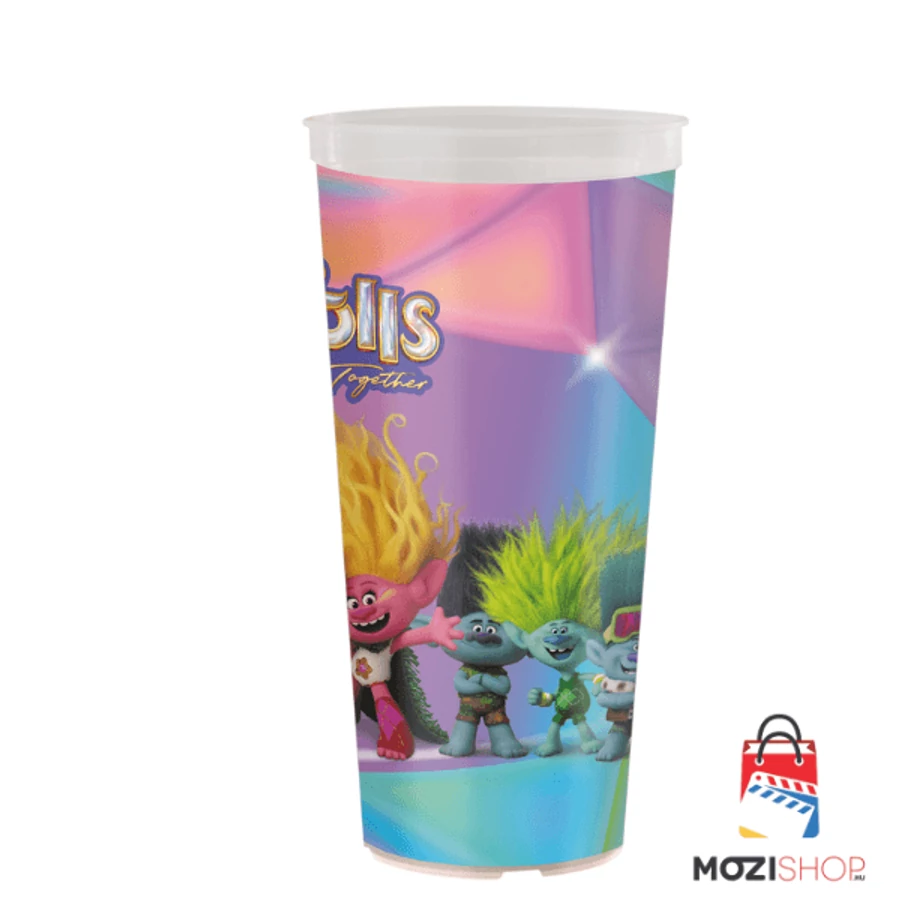 Trollok: Együtt a banda pohár és Tiny Diamond topper, figura - A Trolls Band Together pohár 0,5 liter űrtartalmú, 100% műanyagból készült - Utánvétes fizetés nem választható