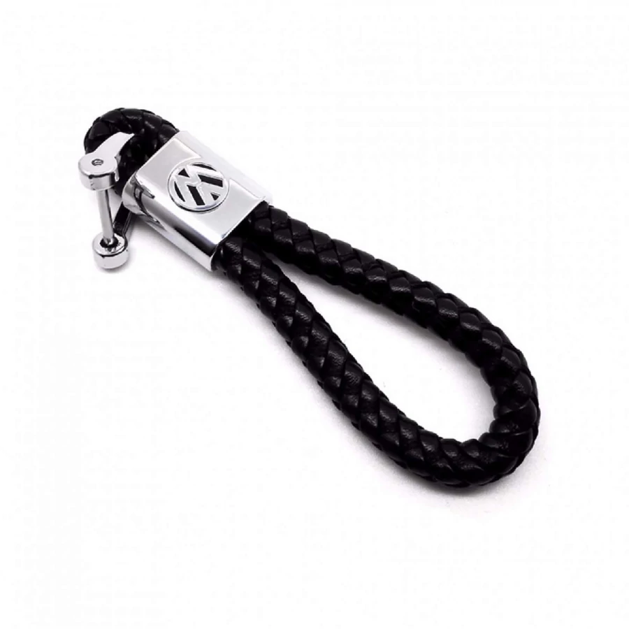 Volkswagen kulcstartó, távirányító tartó fonott műbőr dísszel, biztonsági záras kulcskarikával - kb 11 cm X 2 cm X 1,7 cm méretben