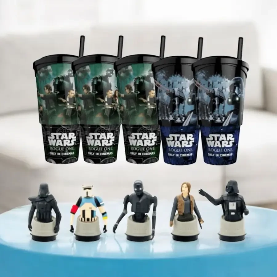 A szett 5 darab, 0,5 literes poharat és 5 különböző toppereket tartalmaz, amelyek mindegyike a Star Wars Univerzum ikonikus karaktereit ábrázolja. A topperek között megtalálható Jyn Erso, K-2SO, Darth Vader és más kulcsfontosságú szereplők, így minden Star Wars rajongó kedvence garantáltan képviselteti magát. Ezek a figurák nemcsak a poharak tetején díszelegnek, hanem önállóan is megállják a helyüket, így akár gyűjtői dísztárgyként is használhatók.